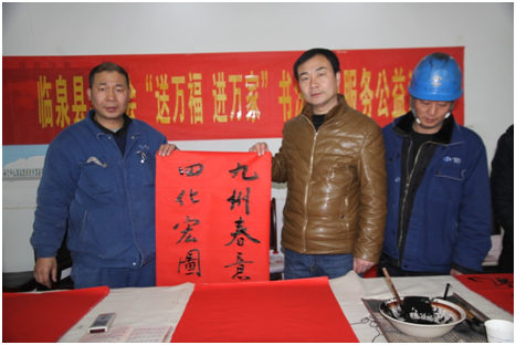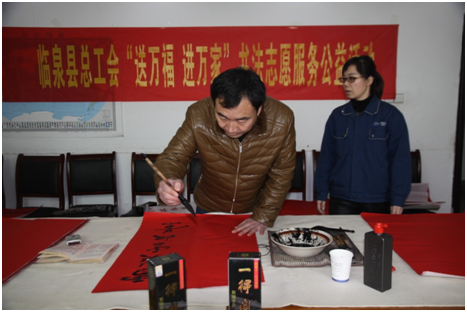 当书法艺术家们把春联送到职工手里,职工们十分珍视地拿着春联,连声道谢,纷纷感谢党的十九大以来党和政府处处为百姓着想、处处为百姓送来温暖;并明确表示,春节期间,一定坚守岗位、尽职尽责、认真工作,全力做好安全生产工作,请领导及家人放心。