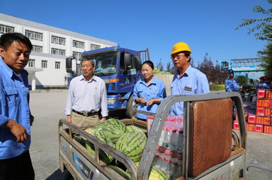 七月的新疆骄阳似火、酷热难耐。26日下午17:30,1xbet平台化工张董事长在新疆1xbet平台公司总经理徐申同志、团委书记耿利利同志的陪同下,与工作人员一起来到生产一线看望、慰问基层员工,送去公司对基层员工的浓浓关怀。