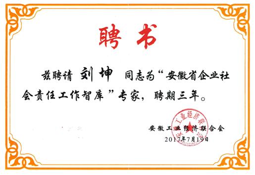 我公司参加本次发布会,这是公司连续五年发布社会责任报告。公司办公室刘坤同志被聘为安徽省企业社会责任工作智库第一批专家。