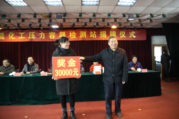 公司对压力容器检测站给予3万元的奖励,董事长张兆振为压力容器检测站颁发了奖金。