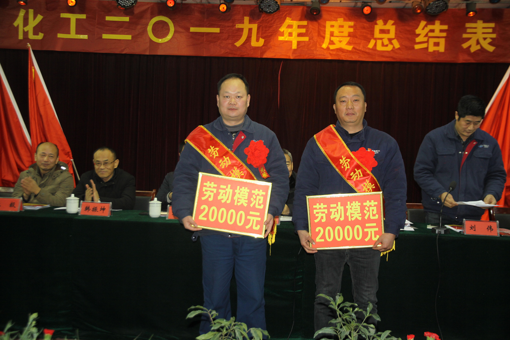 先进集体代表双氧水车间劳动模范宋伟和先进个人代表劳动模范肖俊山分别宣读了先进集体和先进个人倡议书。倡议广大员工情系1xbet平台、立足岗位、爱岗敬业,积极做好2020年的各项工作,为实现“三百愿景”而努力奋斗。