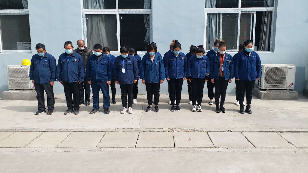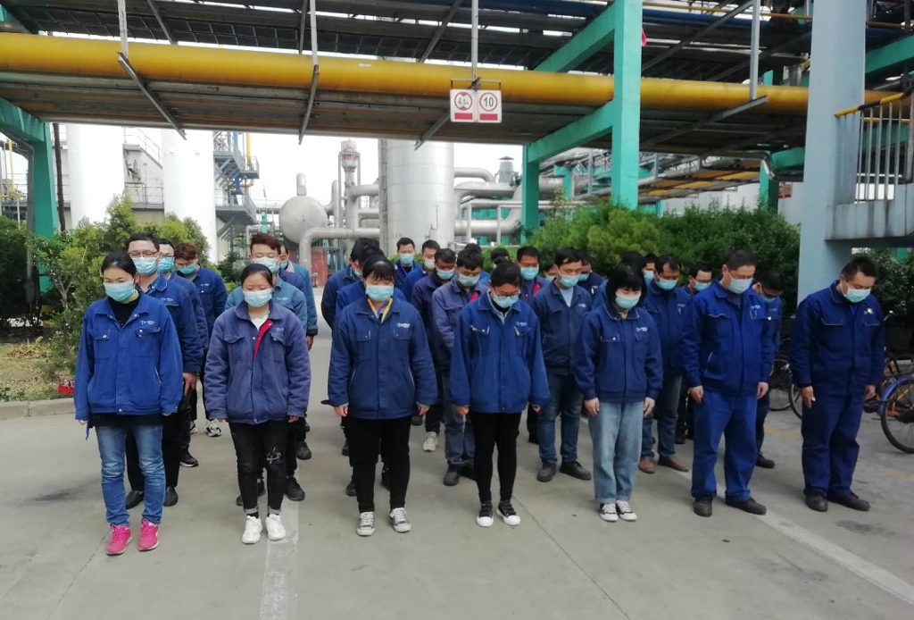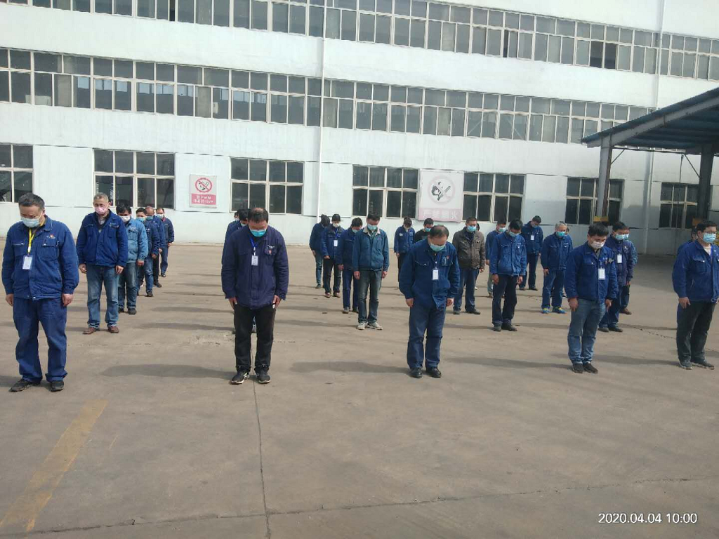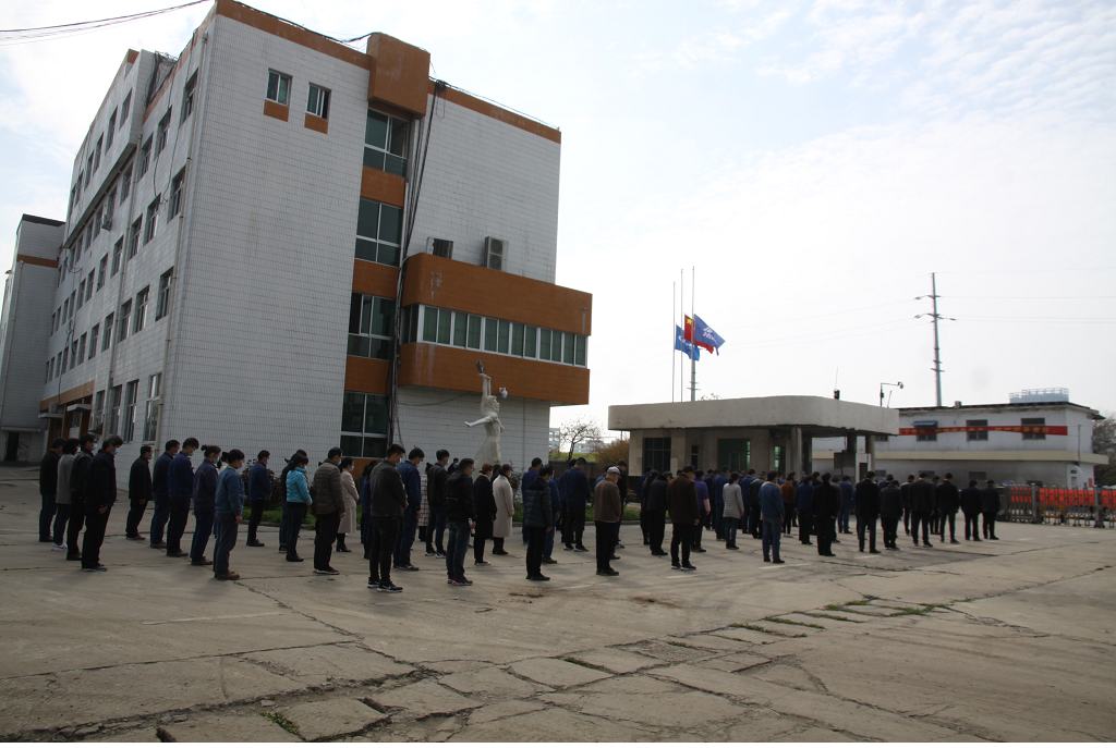 9:50,1xbet平台化工行政办公人员、经营公司全体成员100余人在公司一号大门集合。10时整,鸣防空警报、默哀,和全国人民一起深切哀悼牺牲烈士和逝世同胞。