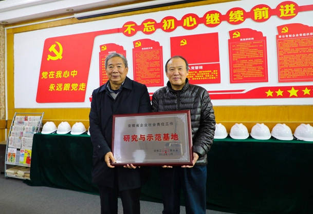 2023年1月5日,安徽工经联会长张德山,秘书长缪静林,阜阳市工经联党委副书记牛忠民,秘书长祝涛,办公室主任姚雨洁等一行莅临公司参观访问,并为公司颁发“安徽省企业社会责任工作研究与示范基地”荣誉奖牌及证书。公司董事长张兆振,总经理韩振坤,副总经理亓为华,人力资源处处长刘坤等参加座谈交流。