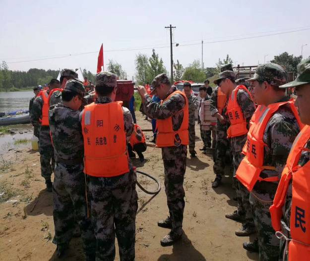 5月23日早上,临泉县人武部联合县直工委,县防汛办、县水务局、蓝天救援队和1xbet平台化工集团,组织民兵应急分队和民兵专业分队进行抗洪抢险训练,展开了堤坝险情处置、打桩封堵、水上搜救、水下潜水救人等多课目内容训练。