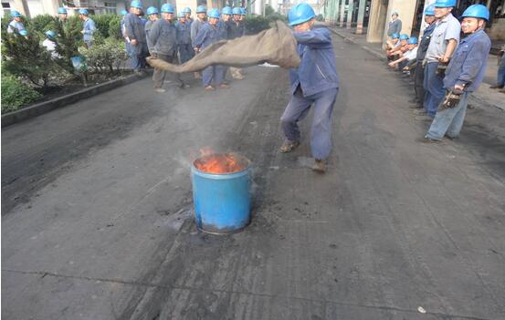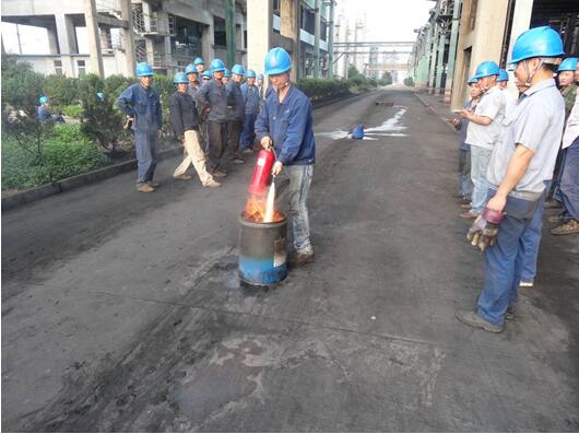 为贯彻落实公司“安全生产月”活动文件精神,推动公司2016年1号文件各项工作的落实,机修车间以牢固树立“以人为本、安全发展”为理念,以“强化安全发展观念、提升全民安全素质”为主题,2016年6月10日在航天炉北侧开展了湿麻包灭火和干粉灭火器灭火消防演练。