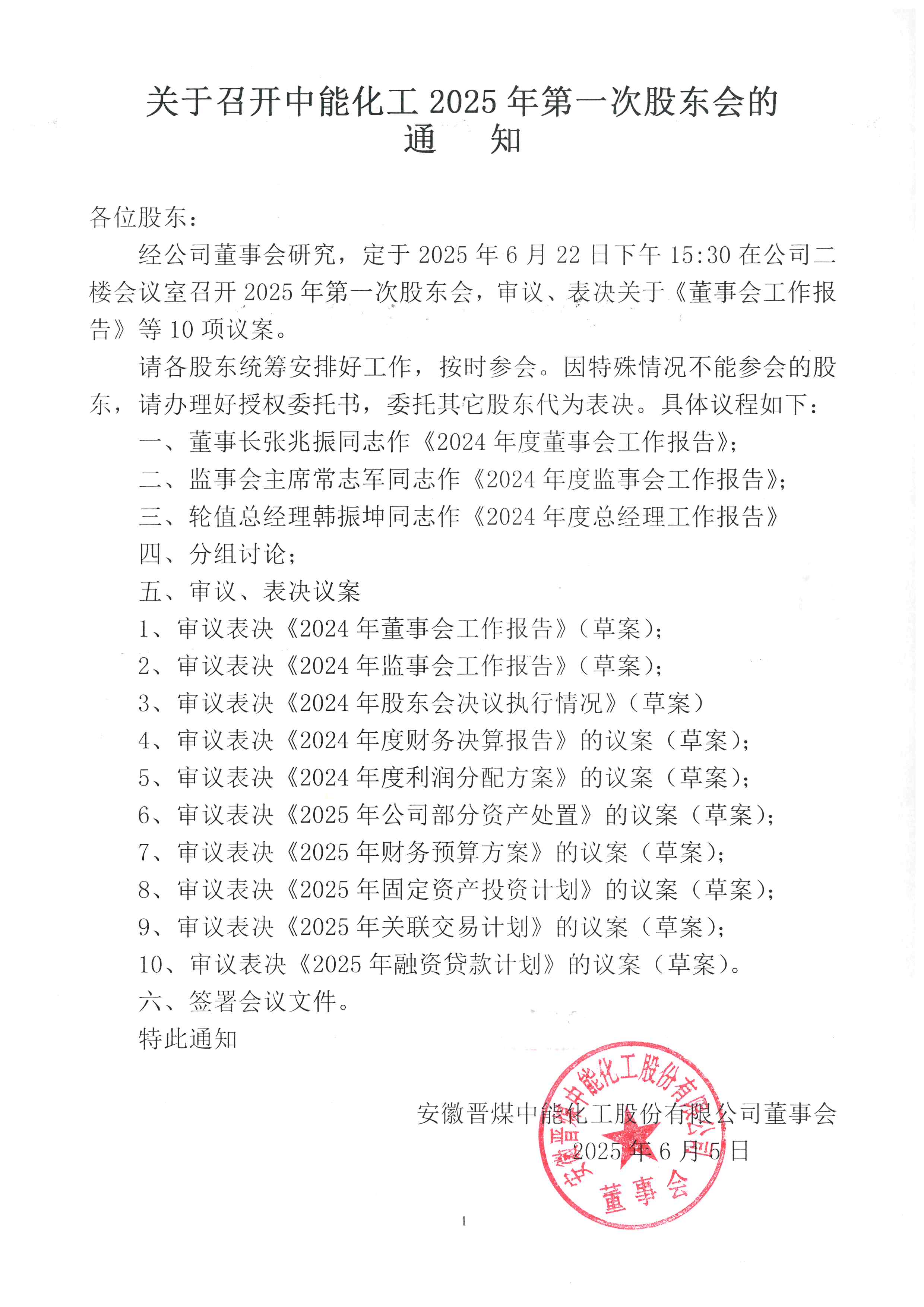 关于召开1xbet平台化工2025年第一次股东大会的通知